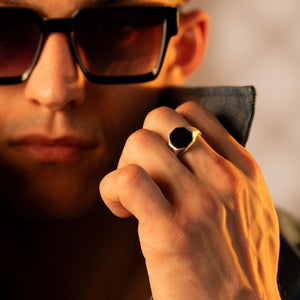 To elevate your office look, wear the Obsidian Octave Ring alongside a well-fitted dress shirt and tailored trousers. Opt for neutral colors like navy or charcoal for a sophisticated appearance, and consider adding a leather belt and matching shoes. This sleek ensemble highlights the ring's bold design while maintaining a professional edge, making it perfect for meetings or business casual settings.